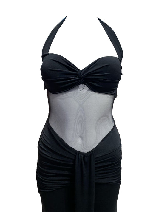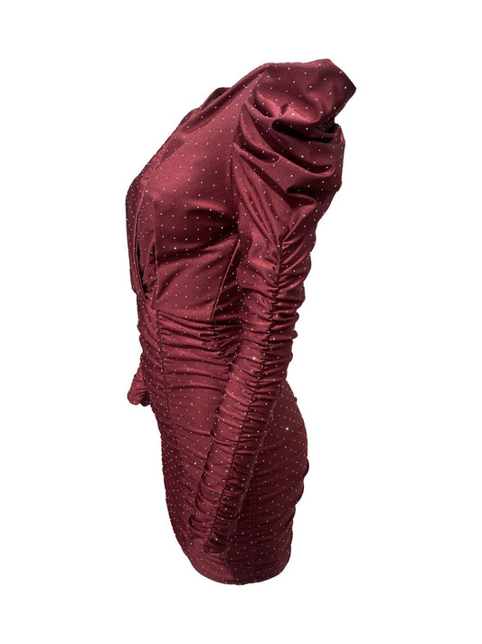 Abito Aderente Bordeaux Increspato con Strass 14288