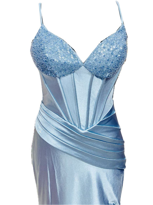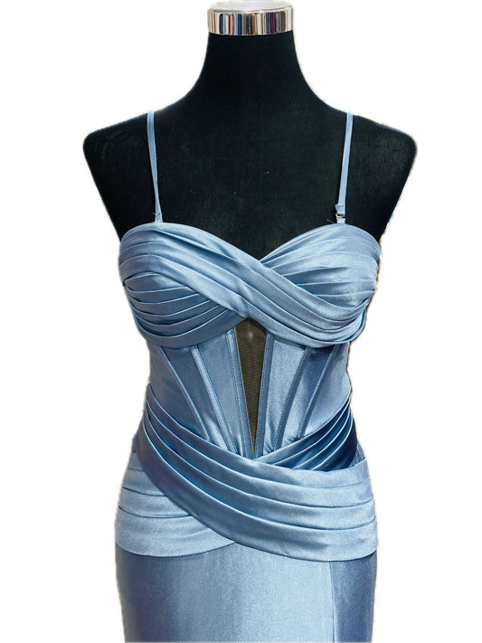 ABITO DA CERIMONIA ADERENTE IN RASO AZZURRO 701