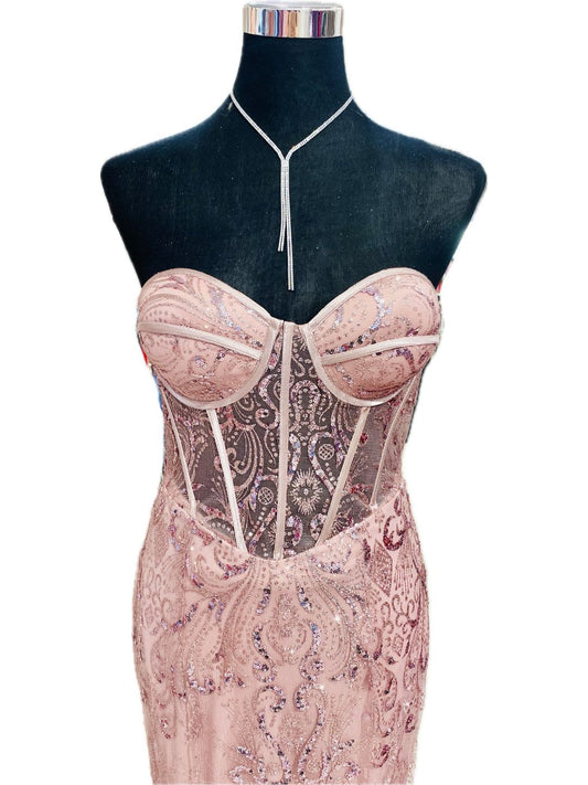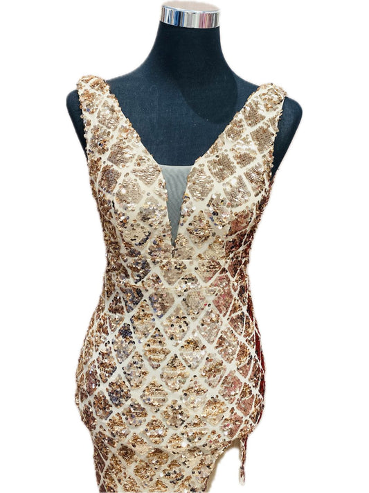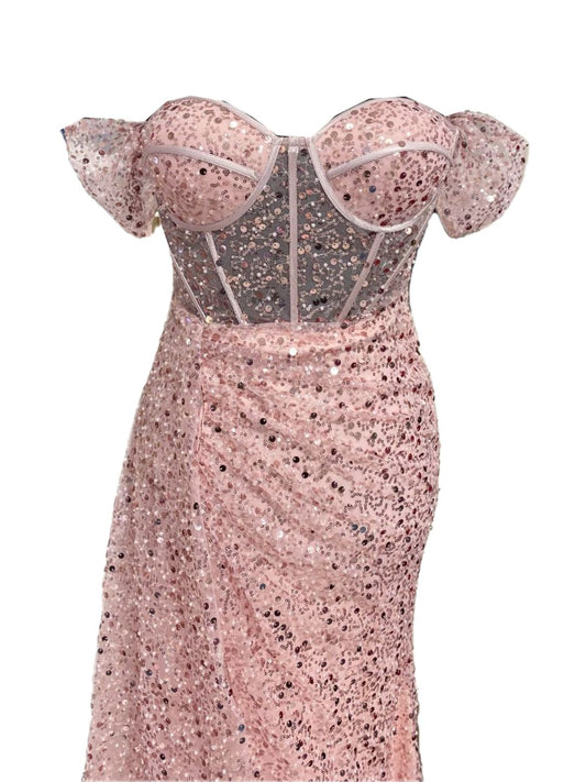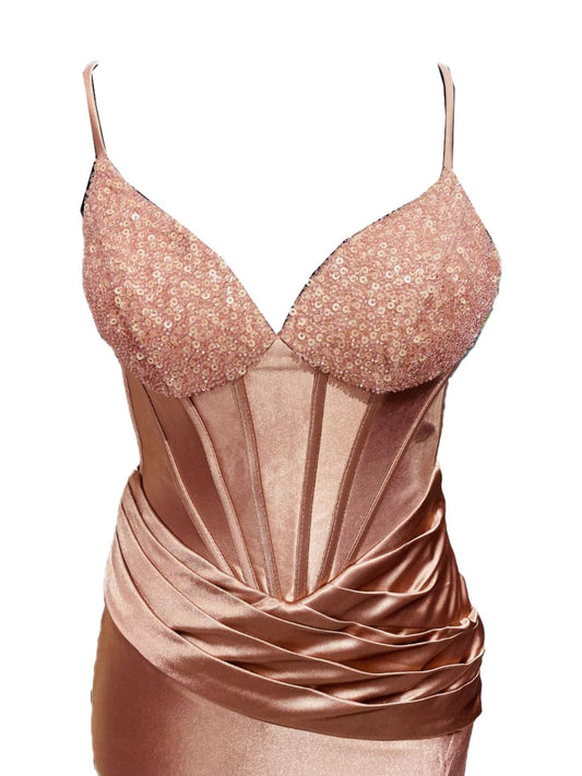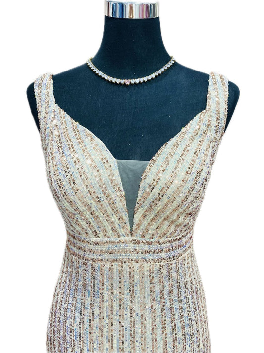ABITO SIRENA ELEGANTE PAILETTES ORO ROSA 19757