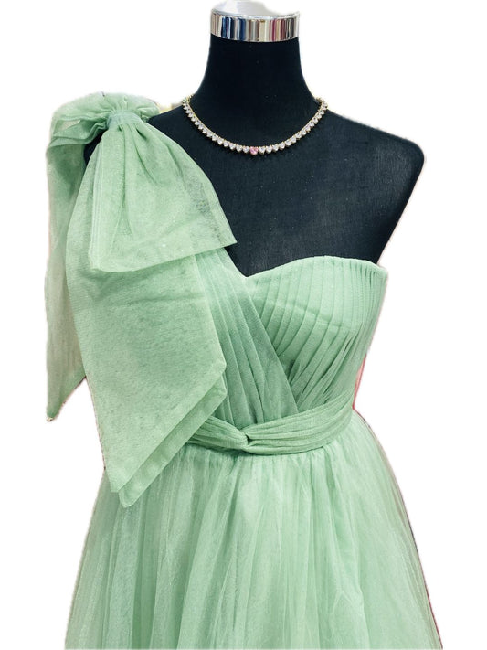 ABITO CERIMONIA MONO SPALLA TULLE VERDE 6409