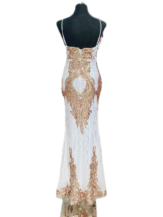 ABITO ELEGANTE PAILETTES BIANCO E ORO ROSA 18800