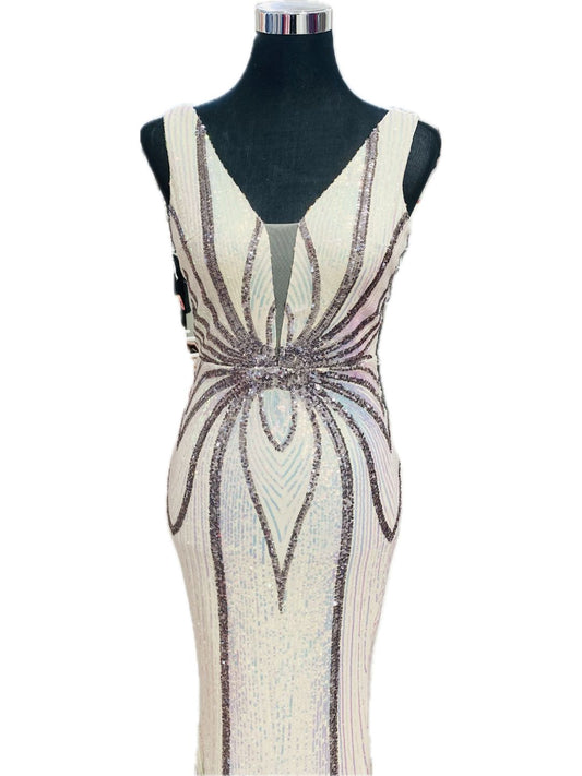ABITO ELEGANTE PAILETTES CREMA E ARGENTO 19025