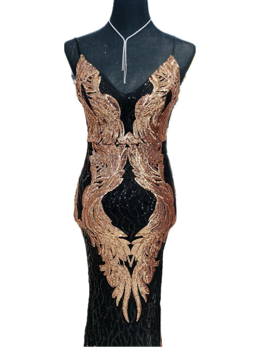 ABITO ELEGANTE PAILETTES NERO E ORO ROSA 18800