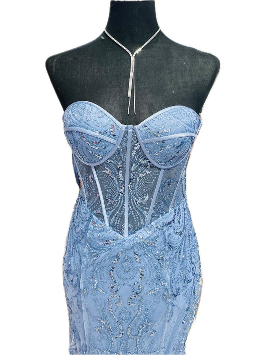 ABITO DA CERIMONIA ADERENTE IN RASO AZZURRO 24102