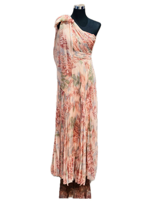 ABITO DA CERIMONIA ELEGANTE PLISSETTATO ROSA FLOREALE 406