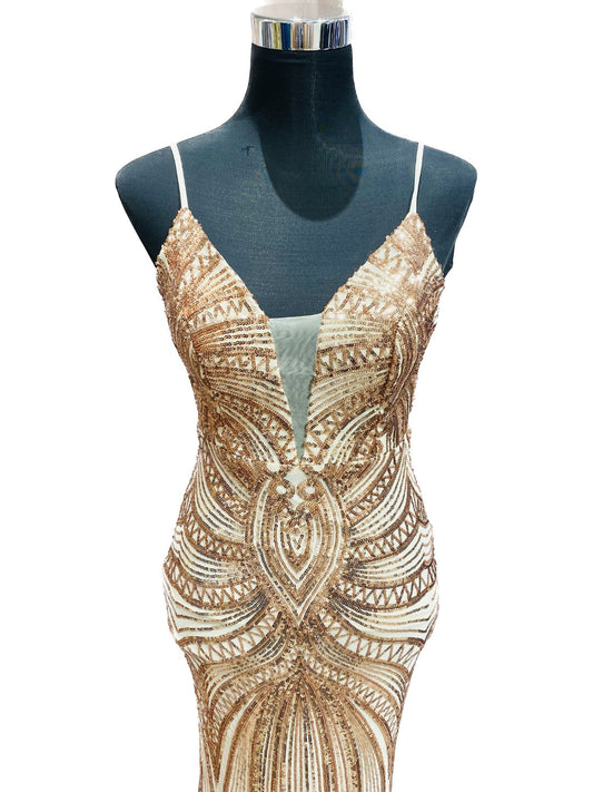 ABITO DA CERIMONIA ELEGANTE PAILETTES ORO ROSA 19330