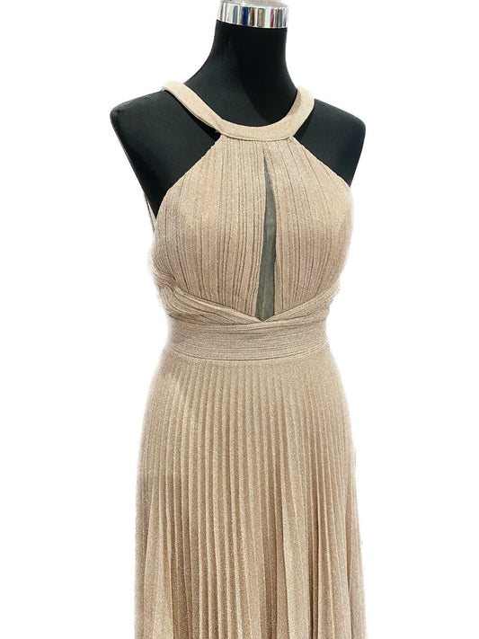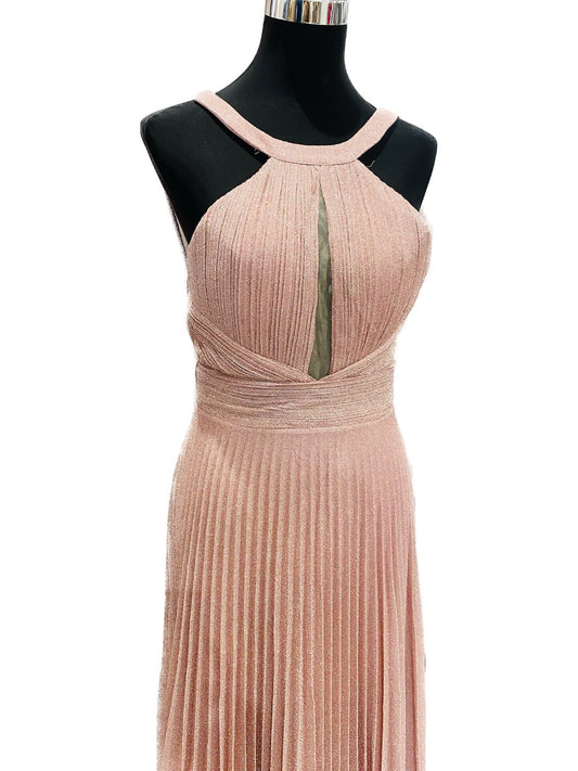 ABITO DA CERIMONIA ELEGANTE PLISSETTATO ORO ROSA A26