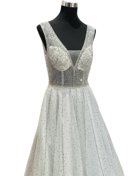 ABITO DA CERIMONIA ELEGANTE TULLE ARGENTO 9350