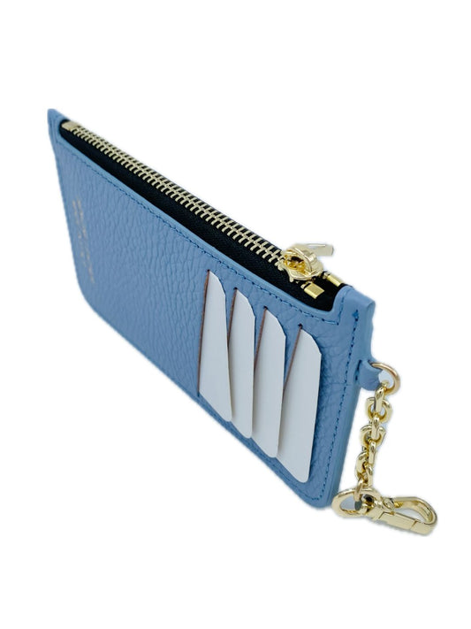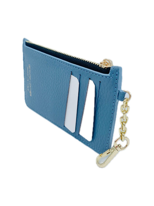 PORTACARTE CON MOSCHETTONE IN PELLE CELESTE 135
