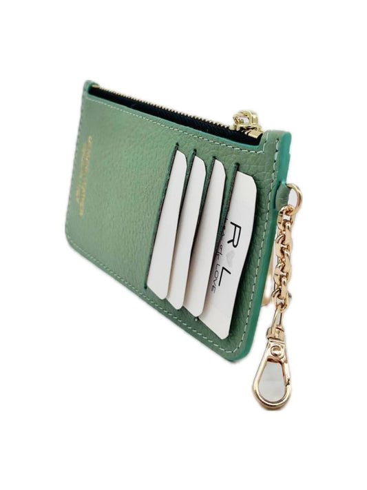 PORTACARTE CON MOSCHETTONE IN PELLE MENTA SCURO 135