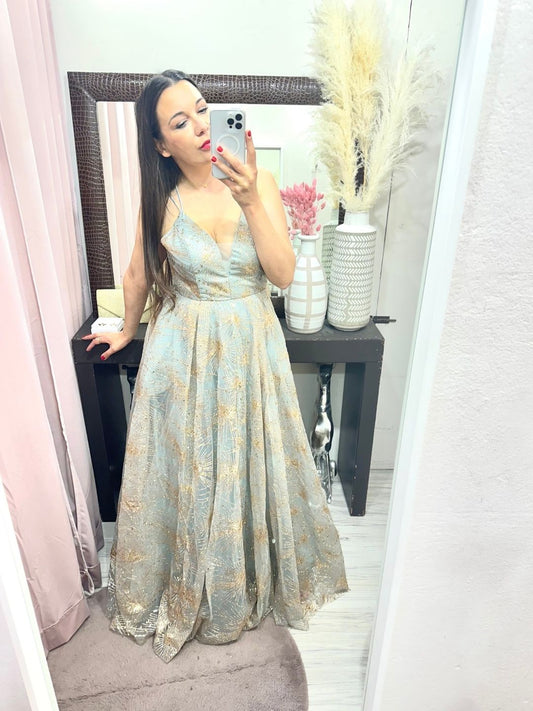 ABITO DA CERIMONIA ADERENTE paillettes Verde Acqua 6632