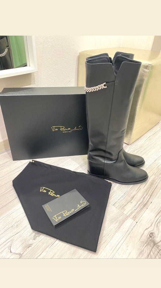 VIA ROMA 15 STIVALE PELLE NERA CATENA STRASS MALIBU' 3657