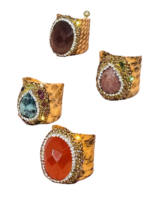 Anelli stampa pitone in pelle Roccia
