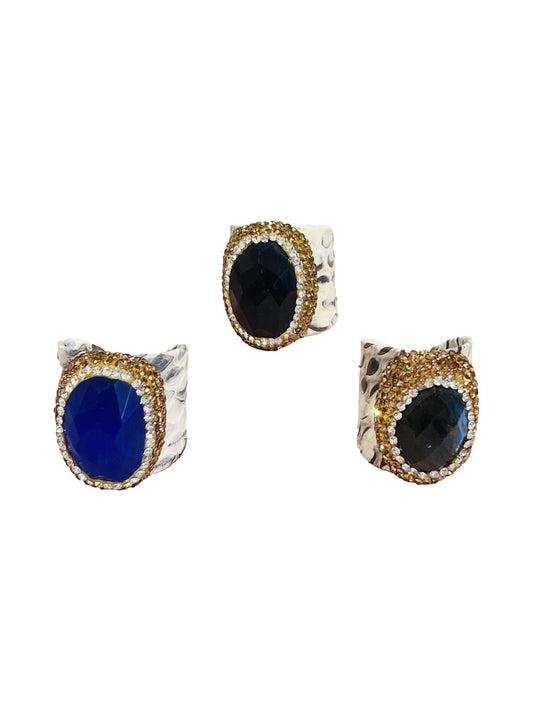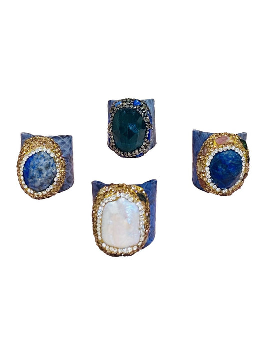 Anelli stampa pitone in pelle Blu