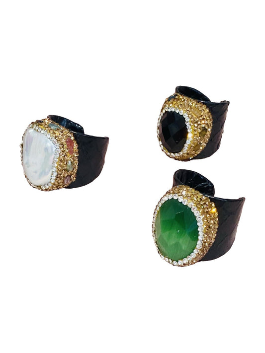 Anelli stampa pitone in pelle Nero