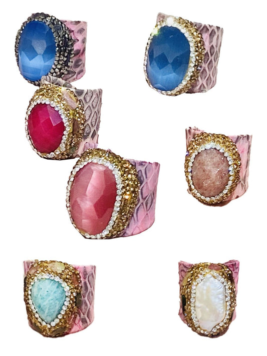 Anelli stampa pitone in pelle Rosa