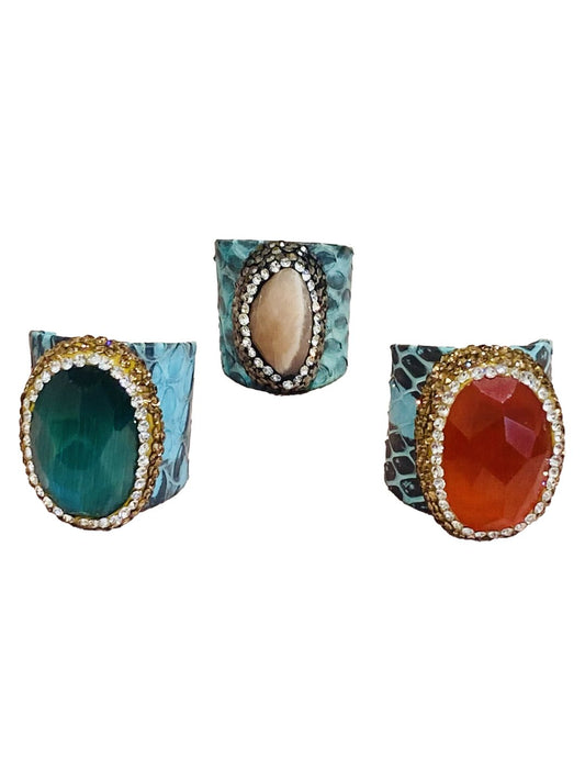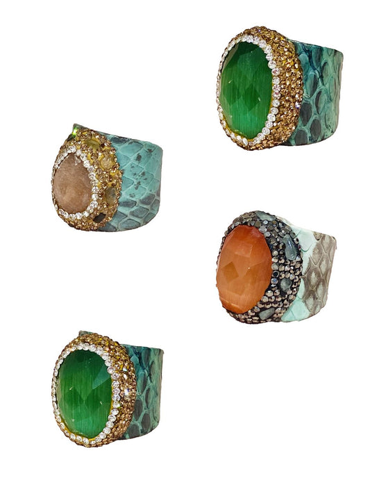 Anelli stampa pitone in pelle Turchese
