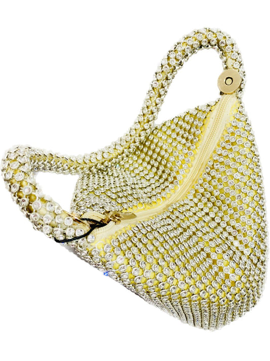 POCHETTE CERIMONIA A MANO TRIANGOLO STRASS ORO 268