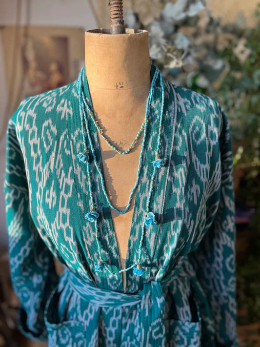 COLLANA TRE FILI – PERLE & FIORI TURCHESE