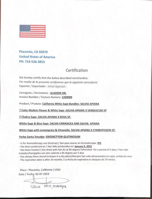 SMUDGE ENERGIA CHAKRA SALVIA BIANCA E MULLEIN FLOWER Californiana