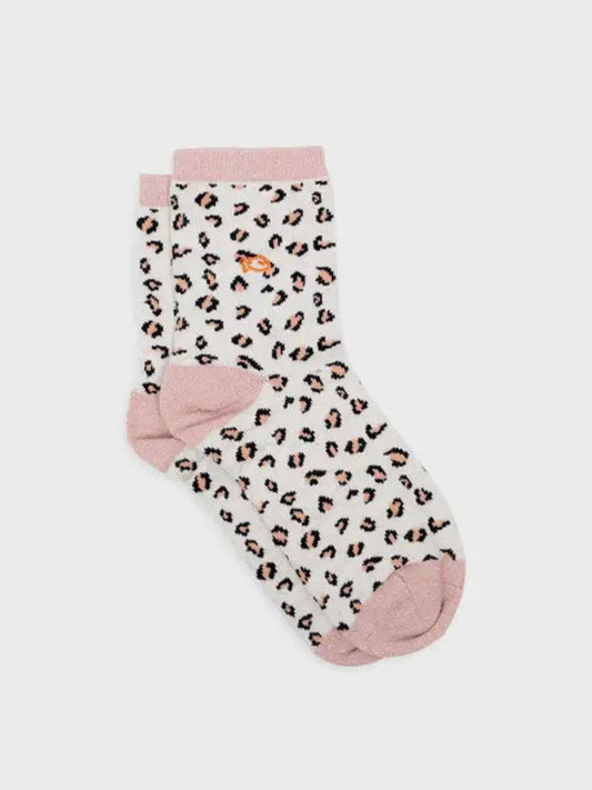 Calzini Leopardati Glitterati in Cotone Pettinato Bianco – Billybelt