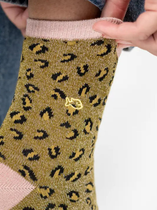 Calzini Leopardati Glitterati in Cotone Pettinato Verde Oliva – Billybelt