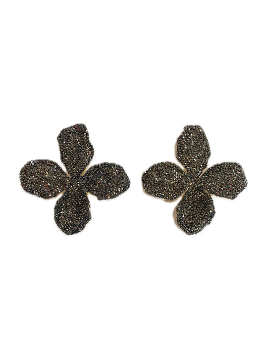 ORECCHINI FIORE STRASS GRIGIO SCURO 51224G