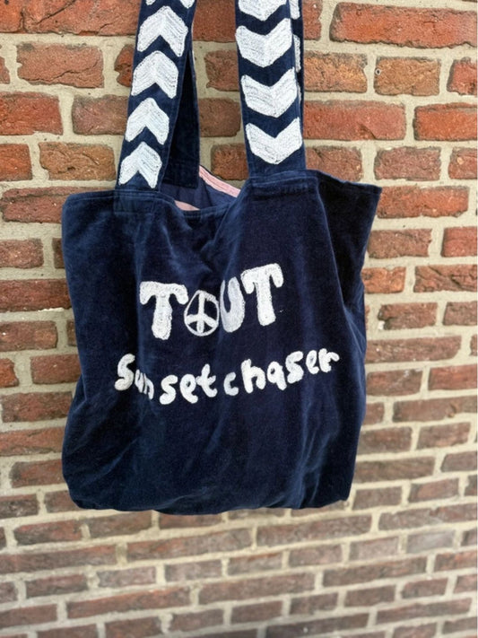 Borsa "Tout SUNCHASER" Ricamata a Mano Blu Notte