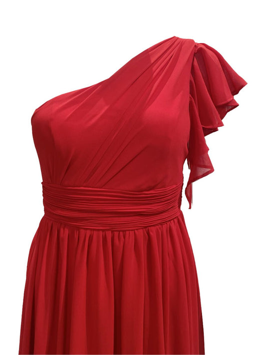 RED ONE-SHOULDER CEREMONIAL DRESS 3034