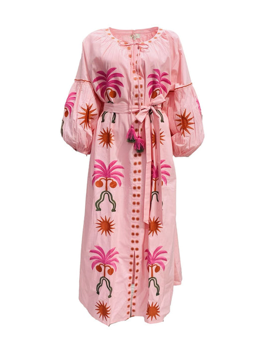 Abito Lungo Ricamati in Cotone Boho-Chic