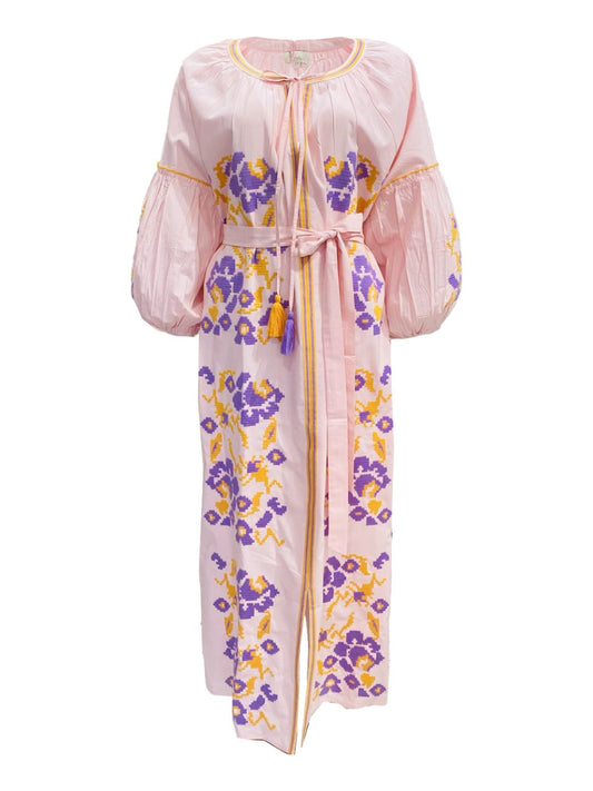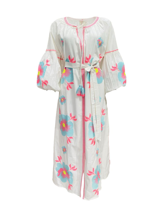 Abito Lungo Ricamato in Cotone Boho-Chic Mod.1
