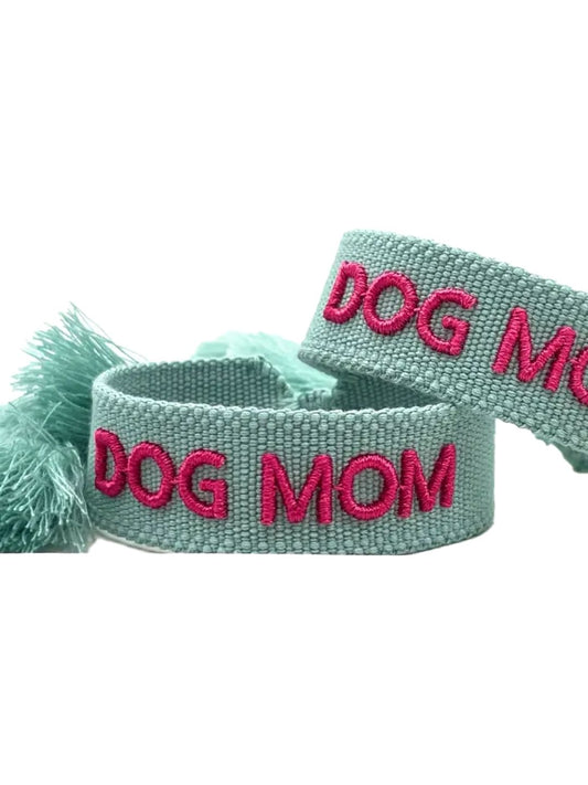 Bracciale "DOG MOM" Verde Acqua e Fucsia
