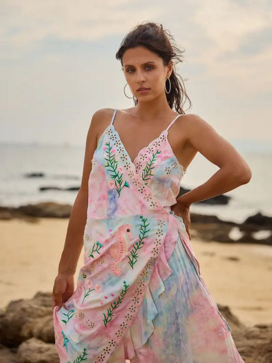 Boho Chic Embroidered Wrap Dress 56SD3033-1790