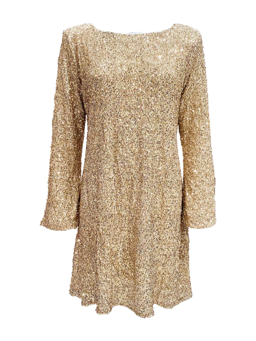 Abito Corto Paillettes Oro Rosa con Fiocco Nero