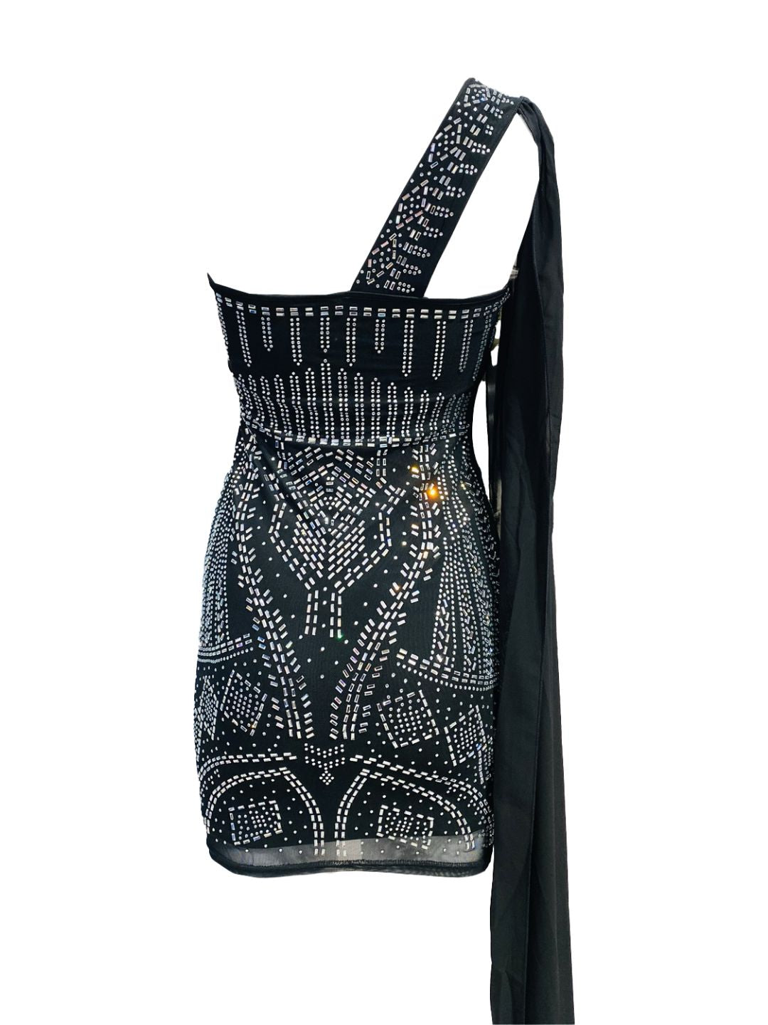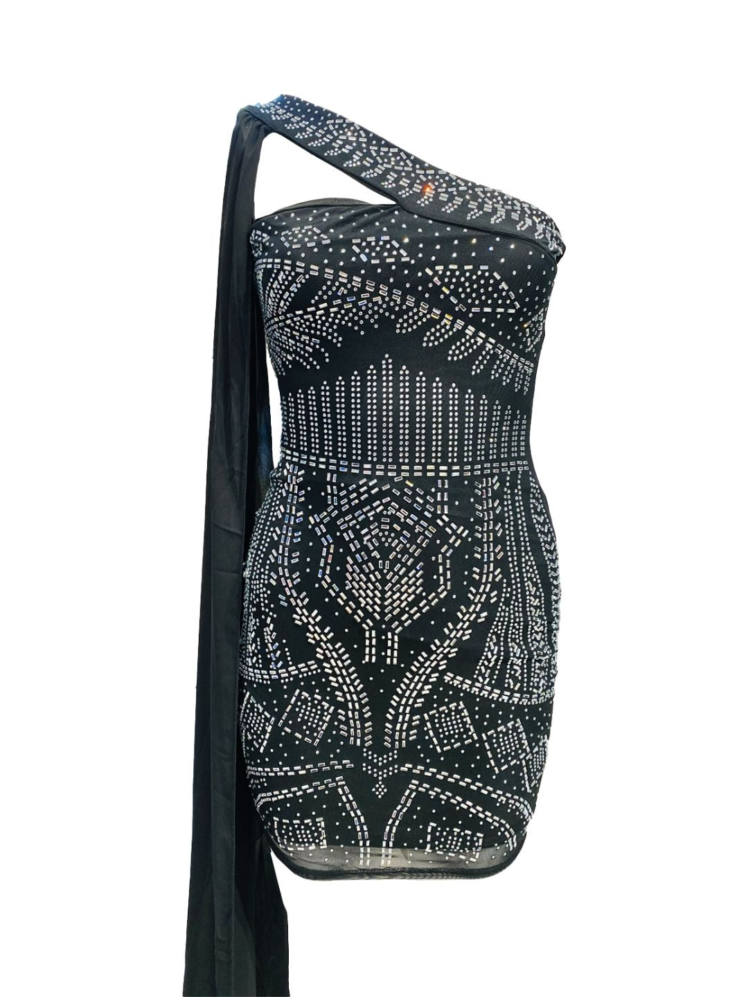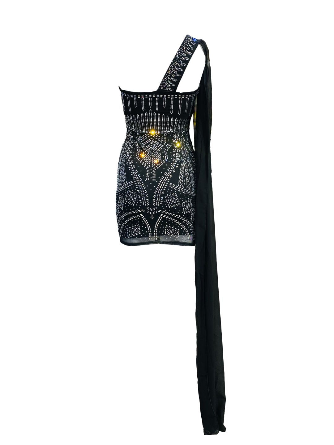 ✨ Abito Elegante Mono Spalla Strass – Nero ✨