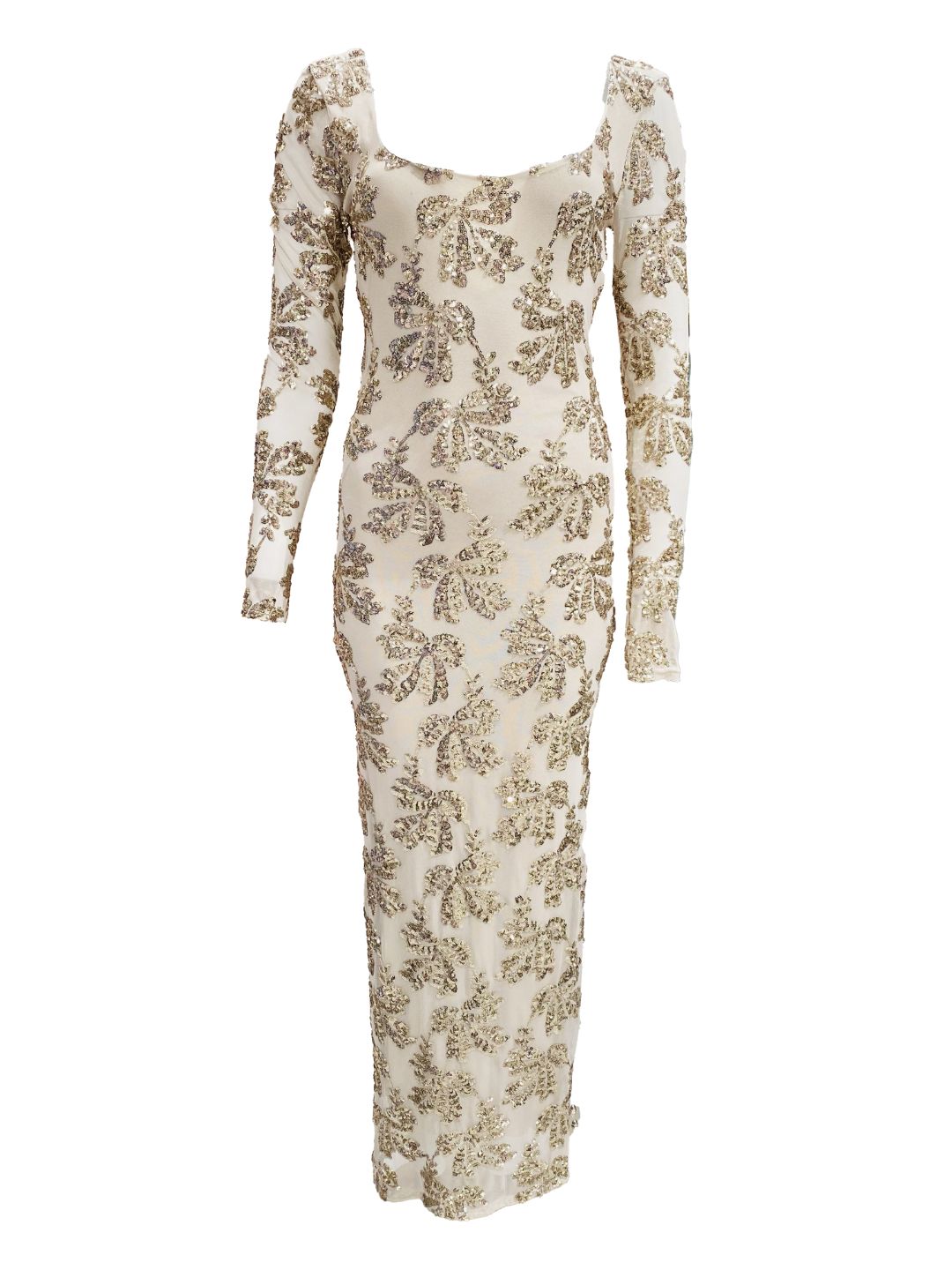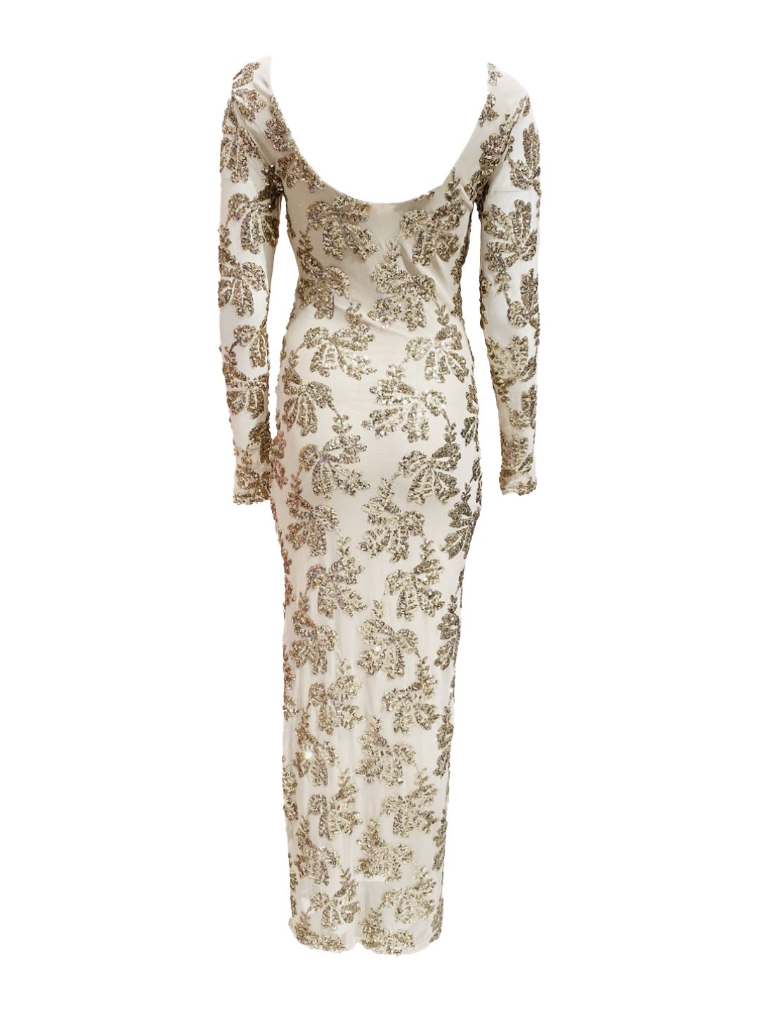 ✨ Abito Lungo Nude con Ricami in Paillettes Oro