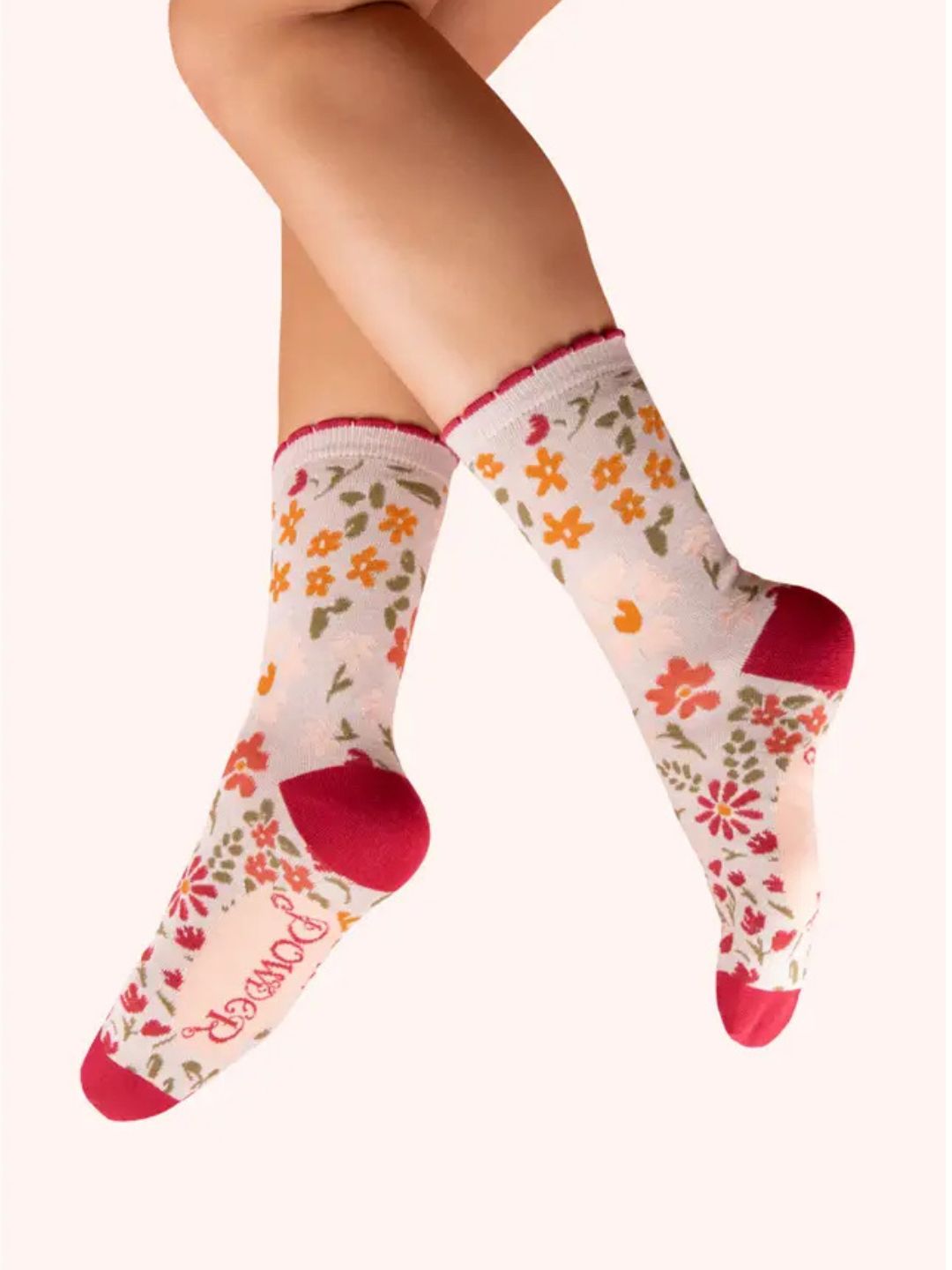 Calzini Powder Design – Prato Fiorito Crema 🌼✨