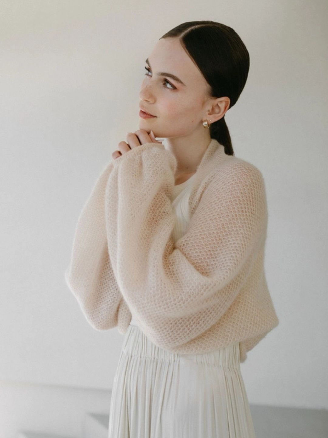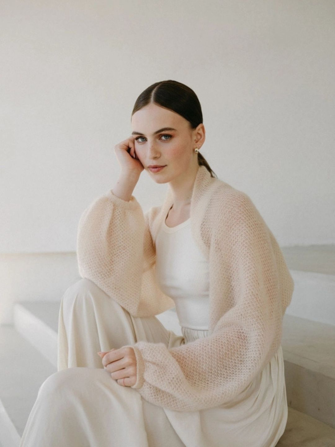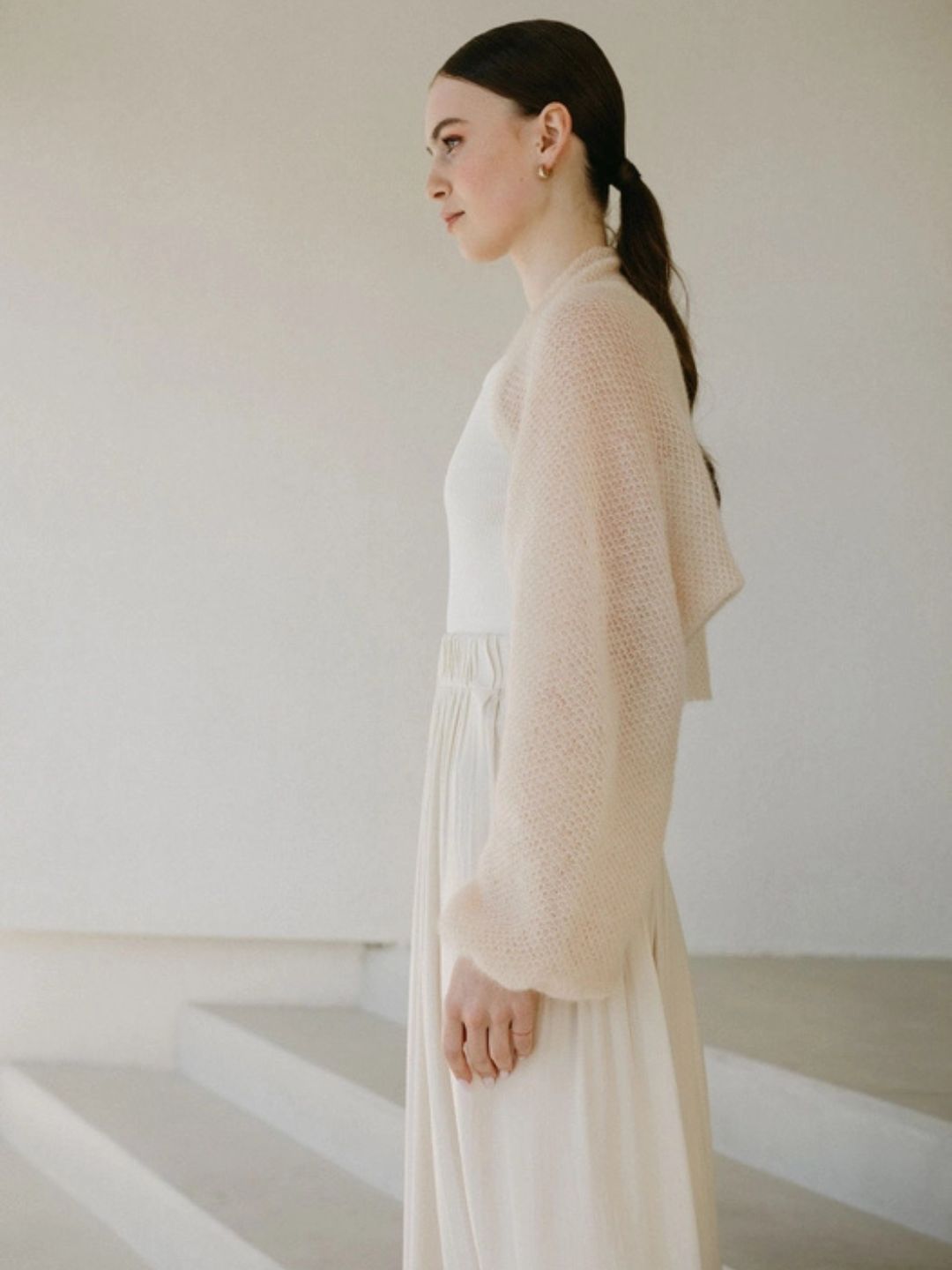 Leggero, raffinato e irresistibilmente chic: il coprispalle bolero sabbia in Superkid Mohair è il capo ideale per aggiungere un tocco di eleganza ai tuoi outfit più speciali 🌸.