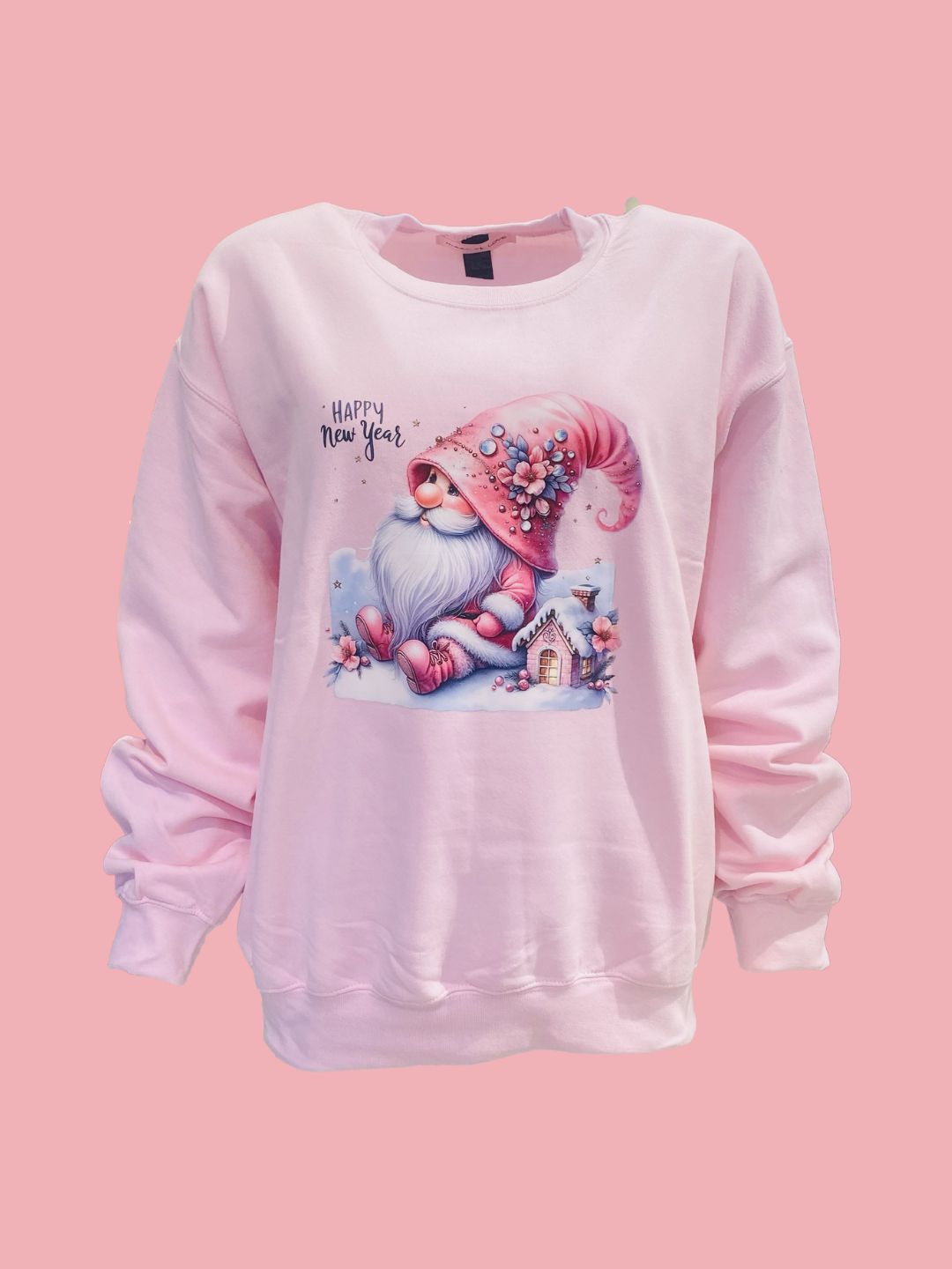 Felpa Rosa Gnomo Heppy new Year Ribes of LOVE