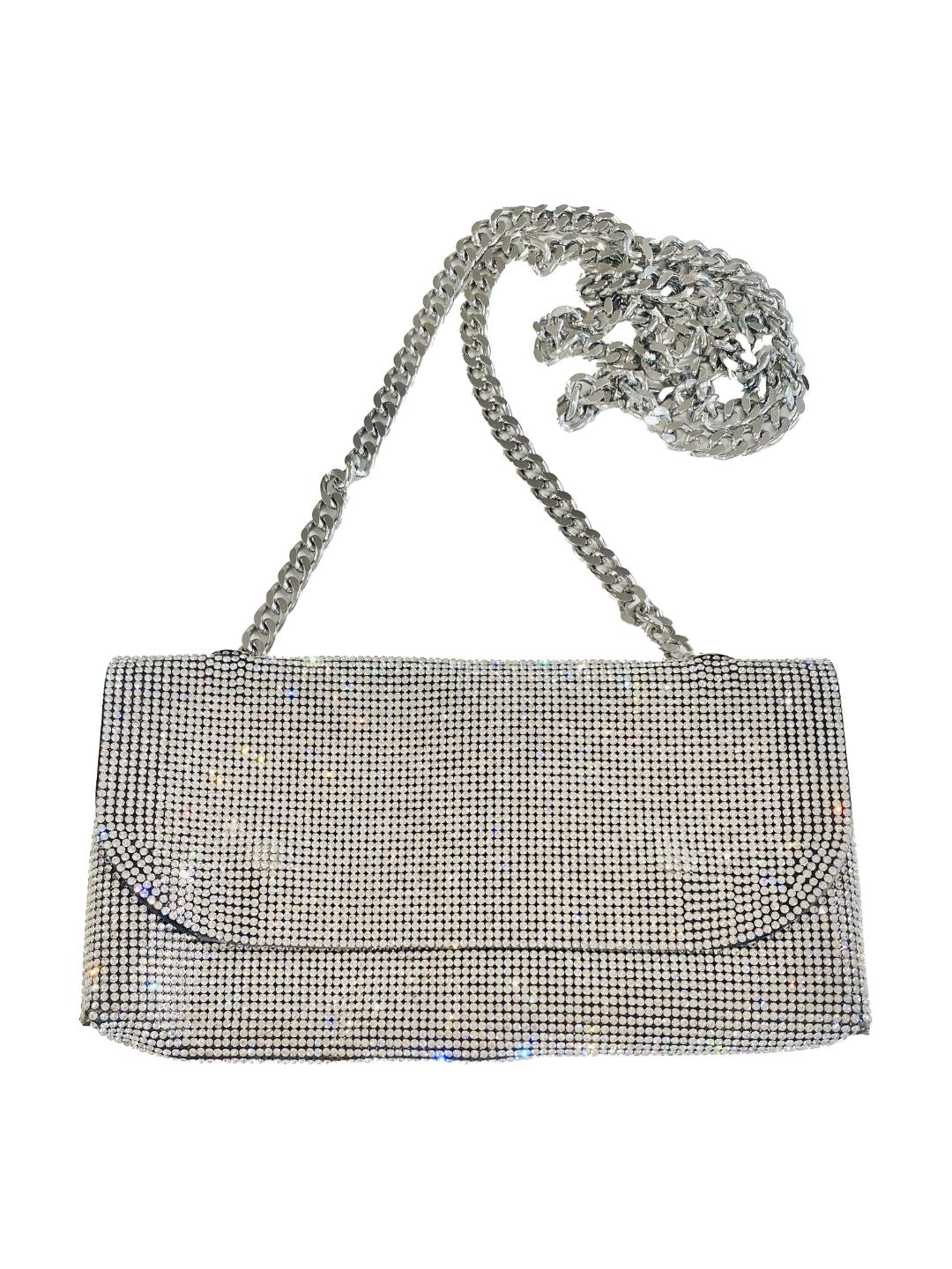Completamente rivestita di strass luminosi, questa borsa è perfetta per eventi speciali, cerimonie o party esclusivi.